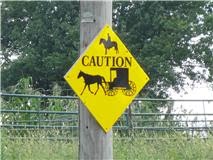 I’m pretty sure this sign means watch out for cowboys and Amish people. Or maybe it means watch out for the Lone Ranger and the Amish.