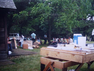 Eating lunch that the ladies from church had brought.